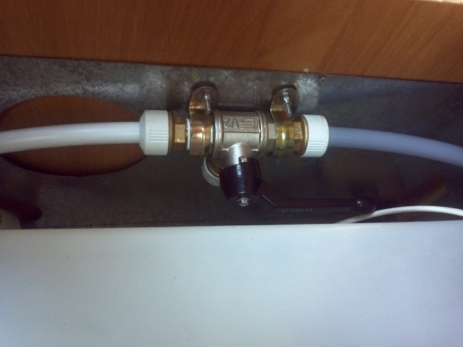 Prima del montaggio finale ho preparato il serbatoio per il carico/scarico e pescaggio dell'acqua. In un negozio per idraulica e in ferramenta ho acquistato il seguente materiale per uso professionale: